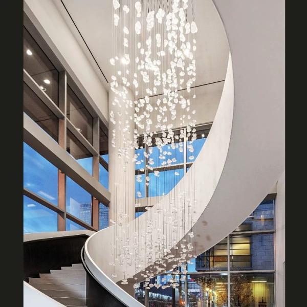 Hotel Crystal Chandelier Bar Living Room Large Engineering Light Green Transparent Stone Glass Lamp Custom Lamp Images